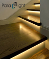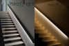 The aluminum is installed inside the reserved groove. The light output area of this installation method is the largest of the three installation methods. If the material of the staircase is smooth marble or smooth solid wood, it is easy to form reflections and cause dazzle.