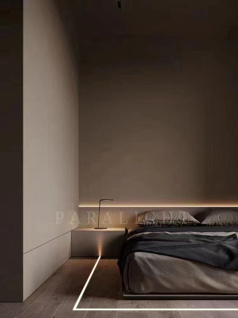 出光均匀柔和,需预先挖好型材尺寸沟,再埋装型材,最后安装灯带,无暗区,整体实现见光不见灯的效果,建议用恒压灯带。