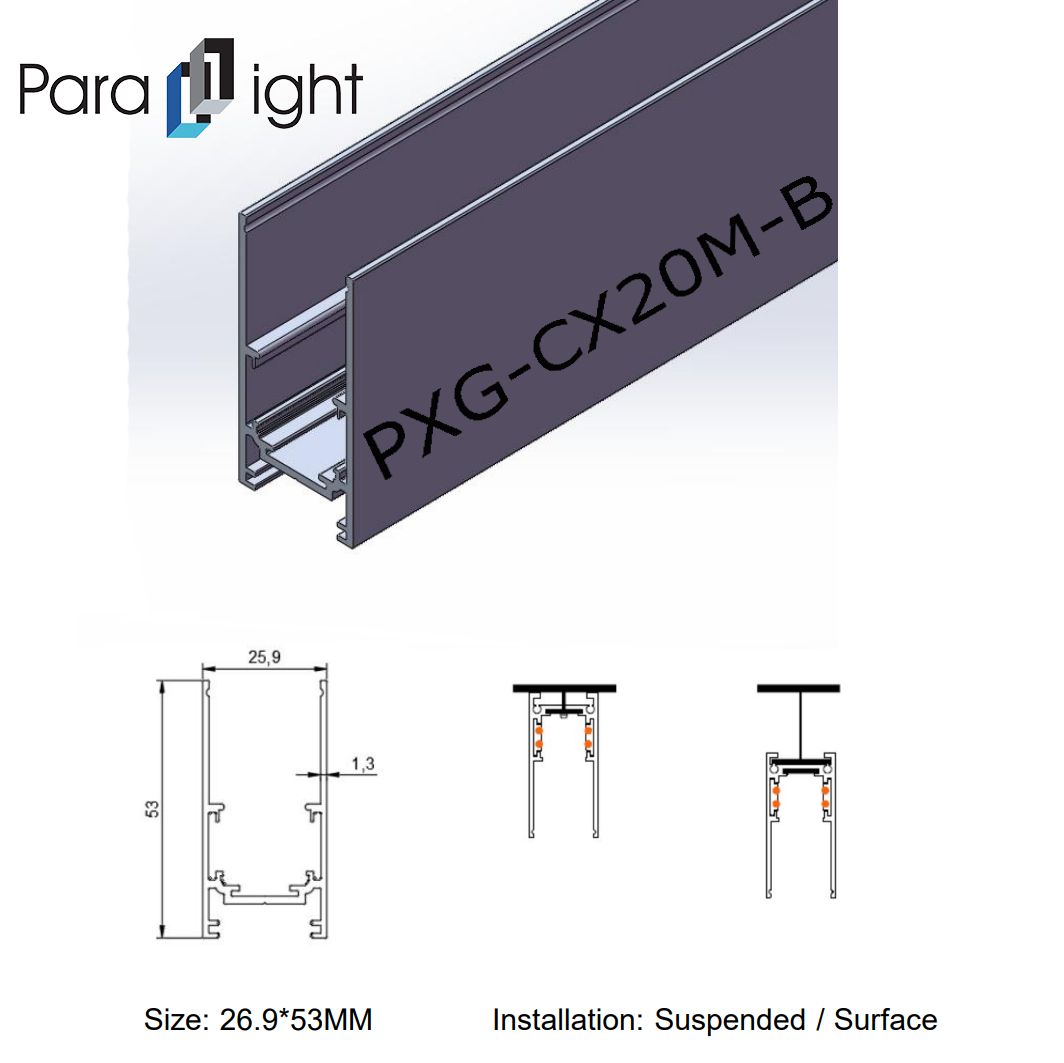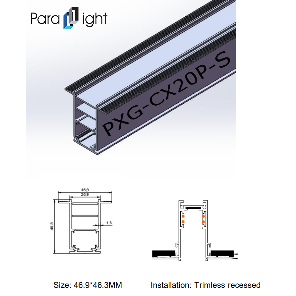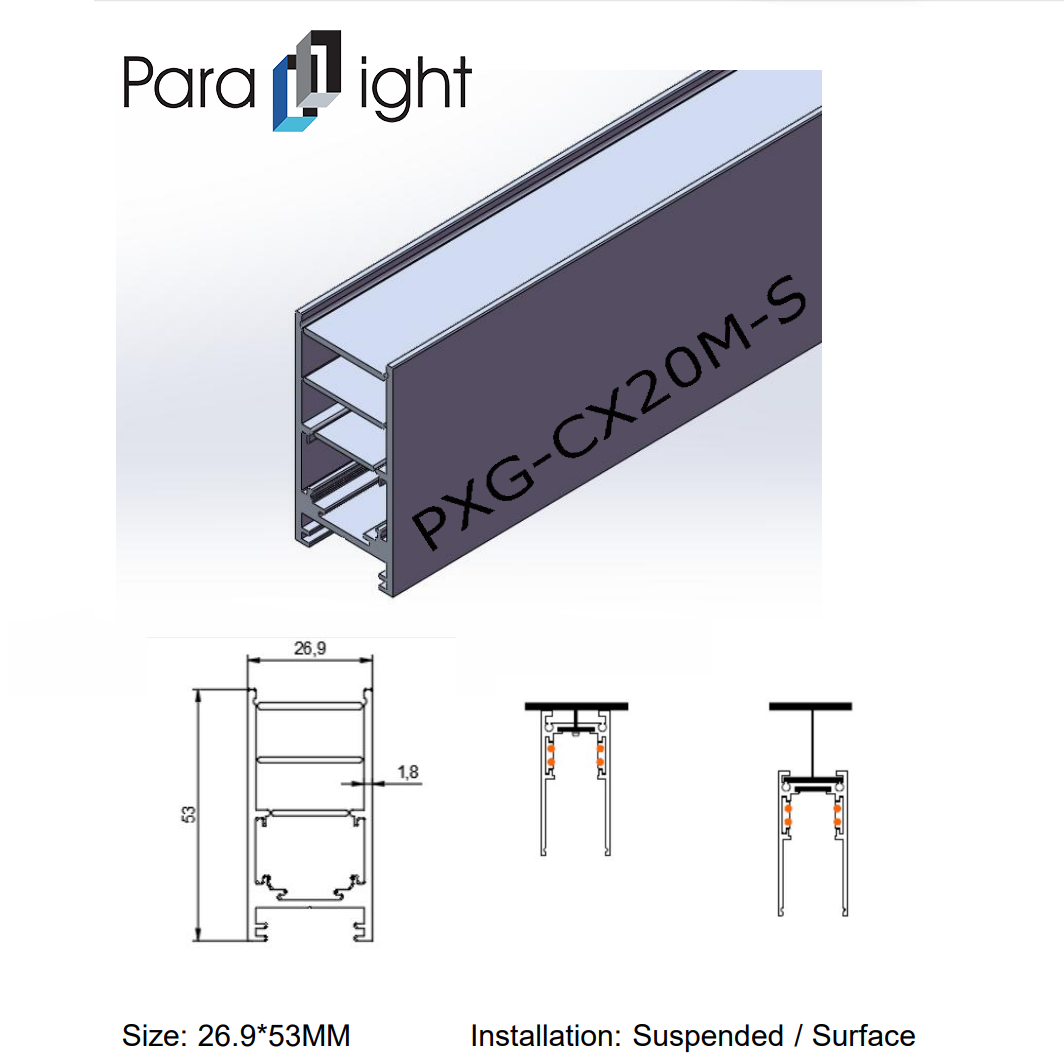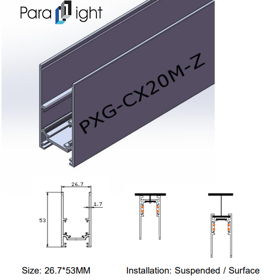 To meet different space requirements, the Magnetic Linear Light Aluminum Profile series offers the following specifications: