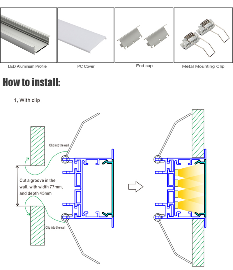 Normally we pack led profile, pc cover and accessories separately. We can also make single package: pc cover, profile and accessories are packed in one poly bag. Normal package can not stick label on poly bag, single package could stick label on poly bag.
